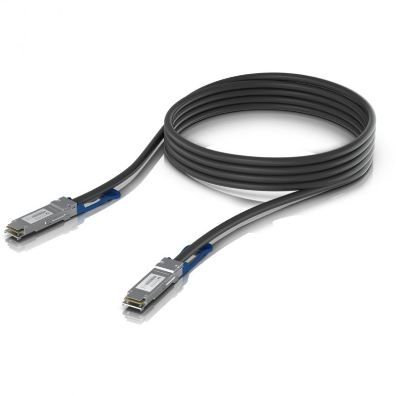 "Ubiquiti UACC-DAC-QSFP28-3M. Cable length: 3 m, Connector 1: QSFP28, Connector 2: QSFP28"\n"QSFP28 direct attach cable with a 100 Gbps max data rate."