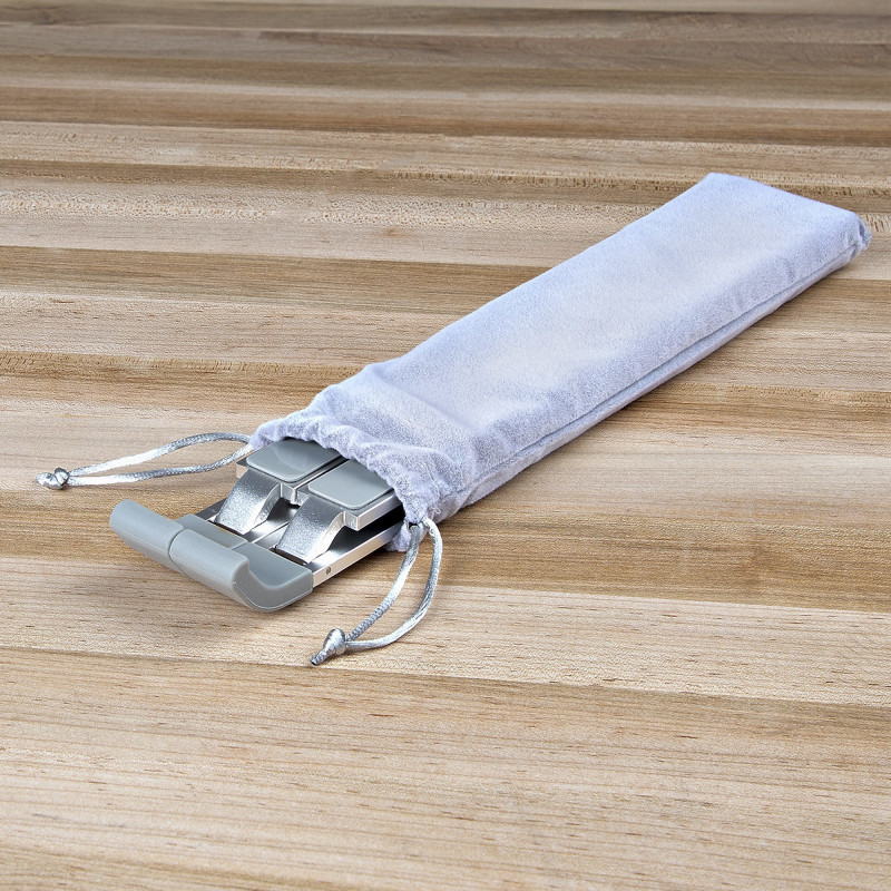 The ultra-lightweight (0.73lb / 329g) collapsible stand is ideal for users who require a stand that is portable and can be quickly deployed. Transport the fully collapsed stand in the included storage pouch. The width of this laptop computer stand is adjustable, ranging from 2-7.17in (5.1-18.2cm), ensuring multi-device compatibility. Once the stand is folded, the dimensions are 9.4 x 2 x 0.9in (24.1 x 5.1 x 2.4cm).