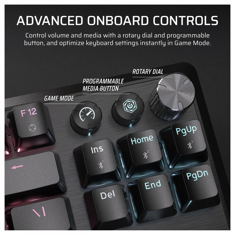With K70 CORE TKL WIRELESS, you have full control over audio and media. Pause your music, mute your game, or crank up the volume during the most epic moments.