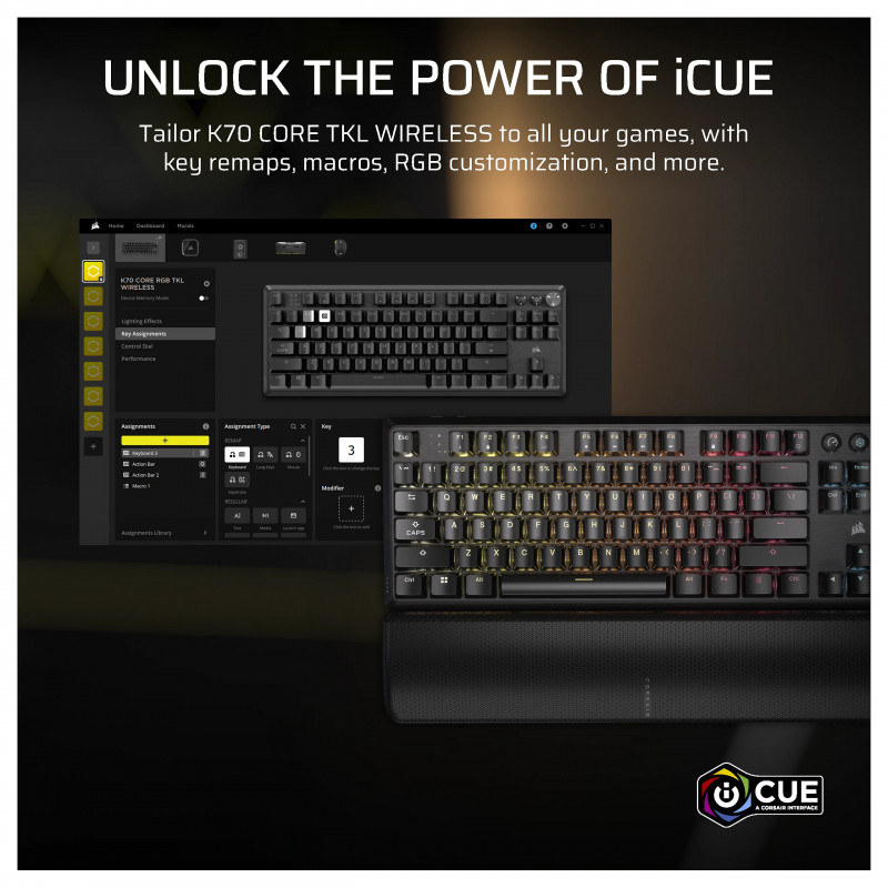 K70 CORE TKL WIRELESS is designed from the inside out with premium materials for unmatched performance.