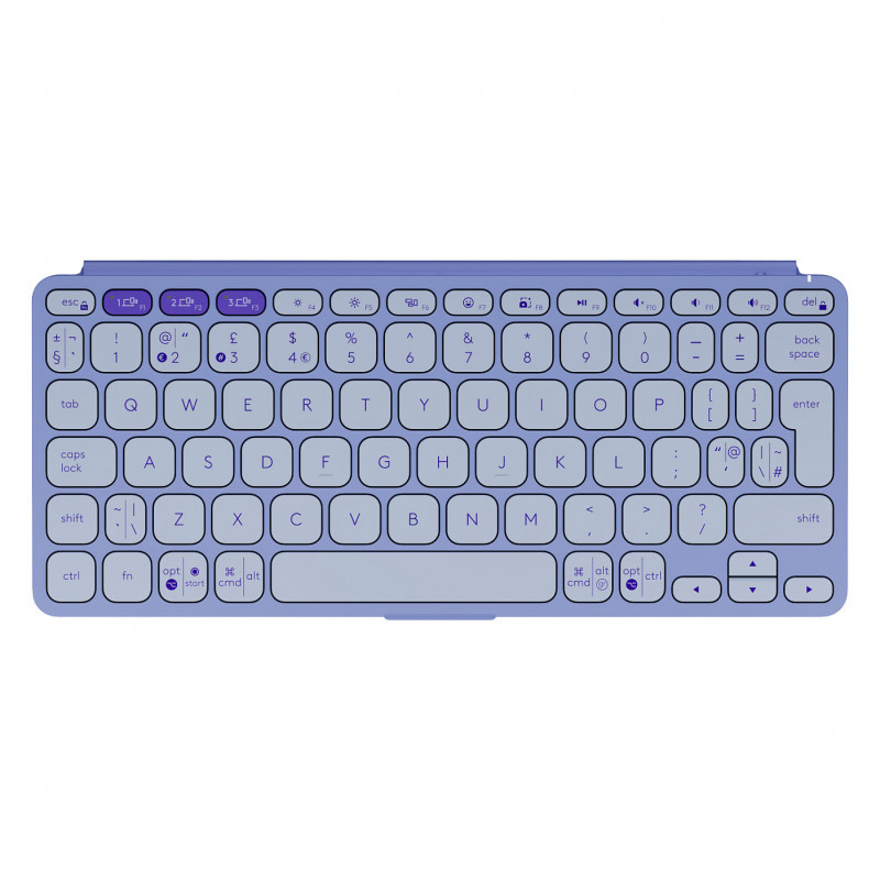 "Logitech Keys-To-Go 2. Keyboard layout: QWERTY, Keyboard language: US International, Keyboard key switch: Scissor key switch. Product colour: Lilac. Connectivity technology: Wireless, Device interface: Bluetooth, Wireless range: 10 m. Battery capacity: 220 mAh. Other operating systems supported: ChromeOS, Mobile operating systems supported: Android 12.0, iOS, iPadOS, Windows operating systems supported: Windows 10, Windows 11"\n