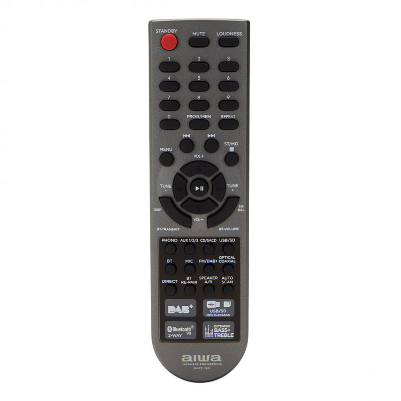 "Aiwa AMR-200DAB/BK. Audio output channels: 2.0 channels, Peak power per channel: 100 W, Total Harmonic Distortion (THD): 0.1%. Speakers connectivity type: RCA, Headphone connectivity: 6.3 mm, Speaker selector: A / B. Power source type: AC. Width: 290 mm, Depth: 100 mm, Height: 430 mm. Package weight: 9.12 kg"\n"The Aiwa AMR-200DAB/BK delivers 200W of powerful, clear sound (2x 100W RMS @4 Ohms, 0.1% THD). Key features include a phono input with RIAA EQ, Bluetooth v5.0, DAB+ and FM-RDS radio, and customizable sound settings. Enjoy versatile connectivity with multiple audio inputs and gold-plated speaker terminals. Perfect for audiophiles seeking superior audio quality."