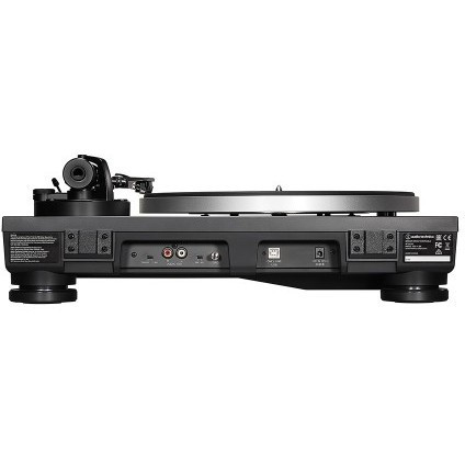 Constructed of anti-vibration damping materials with heavy-mass metal chassis inserts, the AT-LP5x turntable has been designed to limit low-frequency acoustical feedback. Its precision-machined, die-cast aluminum platter is powered by a direct-drive, low-noise motor, ensuring stable, on-axis rotation at 33-1/3, 45 and 78 RPM. A 5 mm thick rubber-damping mat, which isolates from low frequency feedback while providing a highly stable surface for all LP formats, tops the platter.