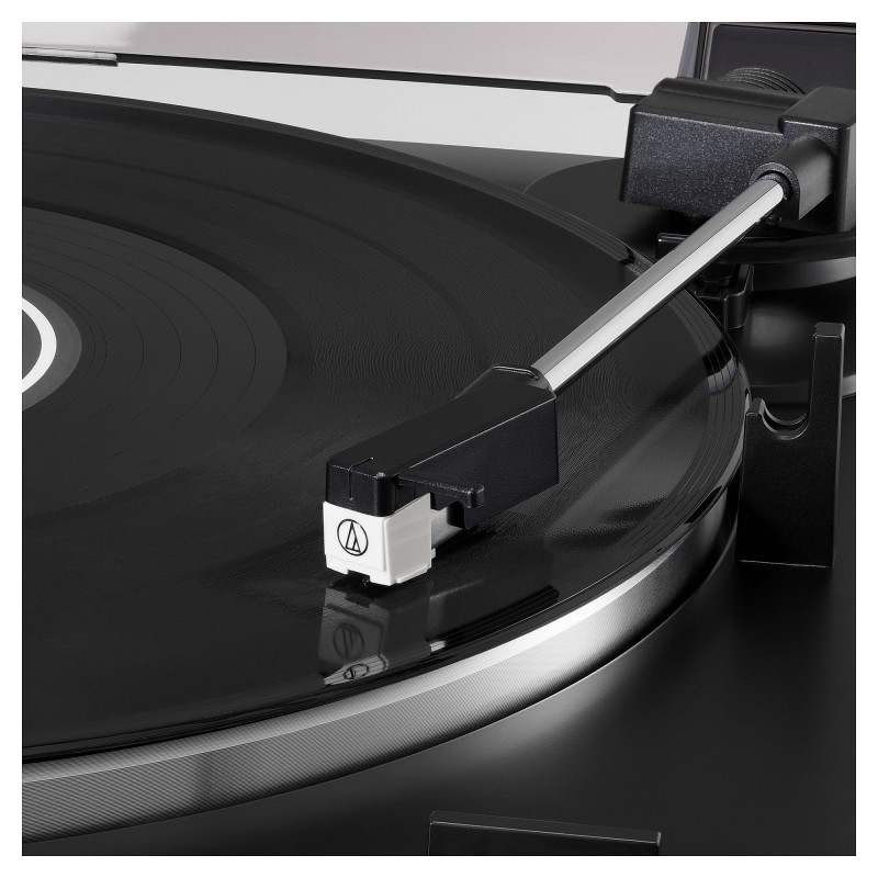 "Audio-Technica AT-LP60X. Type: Belt-drive audio turntable, Operation: Fully automatic, Product colour: Black. Power supply type: AC, AC adapter input voltage: 100 - 240 V, AC adapter frequency: 50/60 Hz. Width: 359.5 mm, Depth: 373.3 mm, Height: 97.5 mm. Cables included: Audio (3.5mm)"\n"Whether you’re just getting into records, rediscovering a record collection long since buried away or simply adding a turntable to complete your system, the AT-LP60X fully automatic belt-drive turntable is an excellent choice. This affordable, easy-to-use turntable plays both 33-1/3 and 45 RPM records and, with its built-in switchable phono preamp, can be connected directly to your home stereo, powered speakers, computer and other components, whether they have a dedicated phono input or not.
