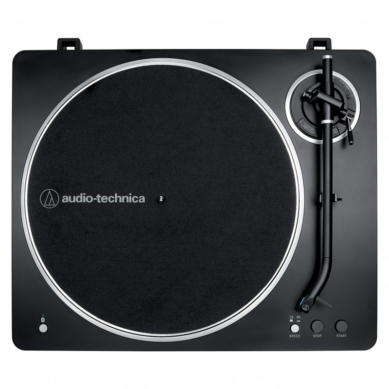 Equipped with Bluetooth wireless technology for simple connection to powered speakers and headphones, the AT-LP70XBT plays 33⅓ and 45 RPM records automatically at the press of a button. And since the J-shaped tonearm features an integrated AT-VM95C cartridge there’s no installation, balancing or other tonearm setup required.