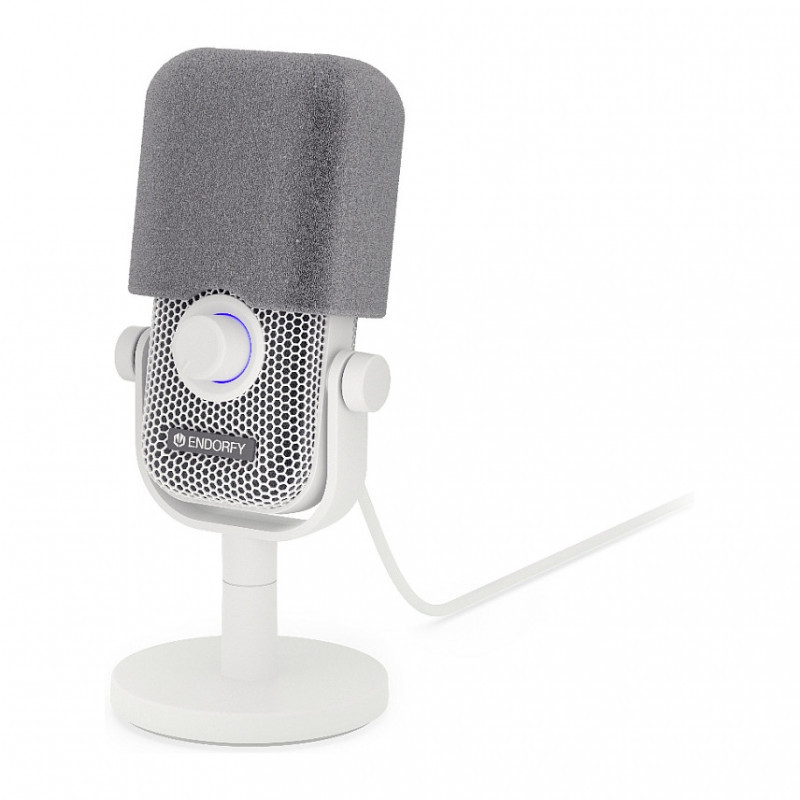"ENDORFY Solum Voice S. Type: PC microphone, Microphone frequency: 30 - 18000 Hz, Bit rate: 24 bit. Connectivity technology: Wired, Device interface: USB/3.5 mm, USB connector type: USB Type-C. Product colour: White, Market segment: Consumer, Control type: Rotary, Touch. Power source: USB. Width: 74 mm, Depth: 74 mm, Height: 170 mm"\n"Stream, chat and record podcasts with the Solum Voice S Onyx White. The RGB-illuminated microphone takes up little space, providing you with room for vlogging, gaming and chatting with friends. It’s also compatible with ENDORFY microphone arms, so you can adjust it to the most comfortable position.
