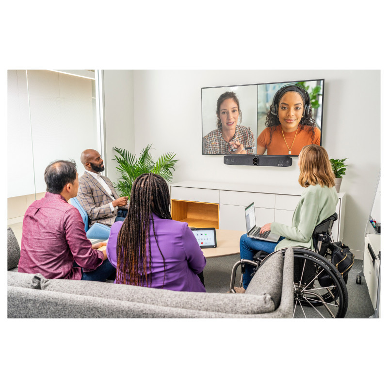 The Poly Studio X70, all-in-one video bar, offers quality audio and video performance in large meeting spaces. Enjoy pinpoint-accurate automatic framing and tracking modes, distraction-free audio technology, and lifelike 4K UltraHD video."