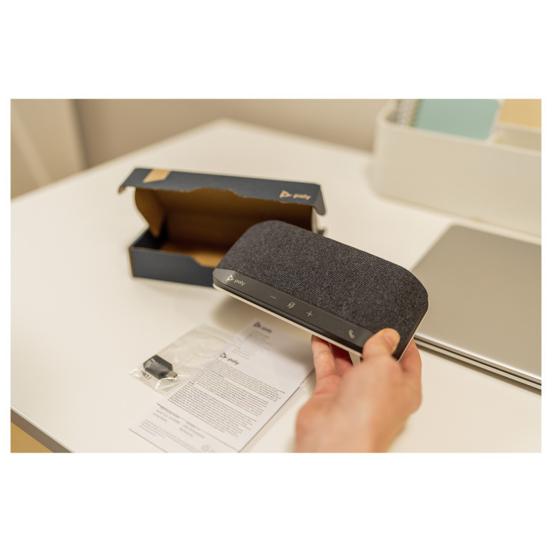 "HP Poly Sync 10 Speakerphone +USB-A to USB-C Cable. Device type: PC, Product colour: Black, Cable length: 0.715 m. Microphone frequency: 100 - 7800 Hz. Connectivity technology: Wired, USB connector type: USB Type-A, USB Type-C. Width: 32.5 mm, Depth: 89.2 mm, Dimensions (WxDxH): 182 x 89.2 x 32.5 mm. Package width: 97 mm, Package depth: 44 mm, Package height: 206 mm"\n"Instant conference room