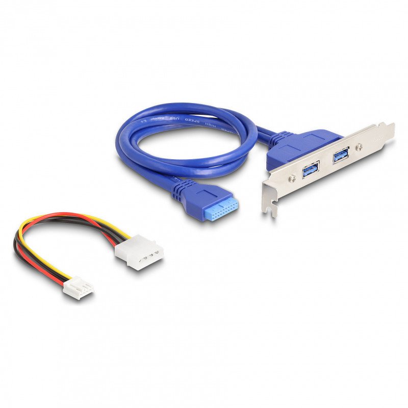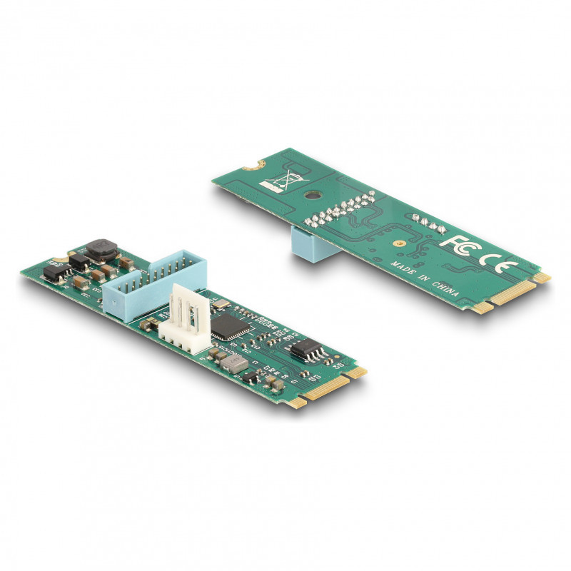 "DeLOCK 61065. Host interface: M.2, Output interface: USB 3.2 Gen 1 (3.1 Gen 1), Host interface gender: Male. Product colour: Black, Blue, Green, Grey, Country of origin: China. Processor model: Renesas uPD720202/Asmedia ASM1806, Connector 1 gender: Male, Connector 2 gender: Female. Windows operating systems supported: Windows 10, Windows 11, Linux operating systems supported: Linux Kernel 6.2. Width: 22 mm, Depth: 80 mm, Height: 17 mm"\n"This converter by Delock expands the system by two USB 5 Gbps Type-A female ports, which can be lead out via the slot bracket."