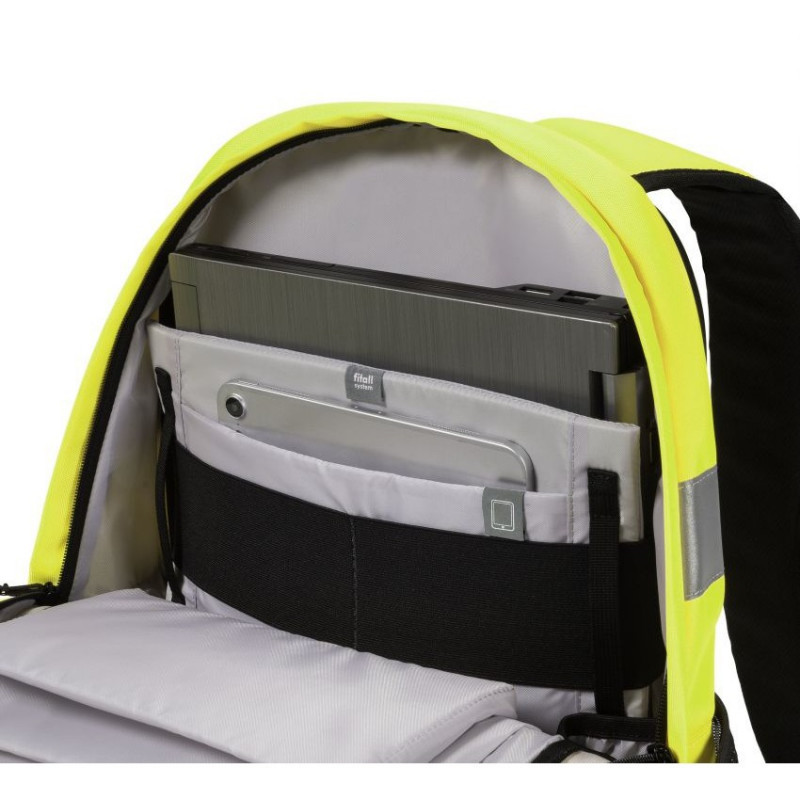 "DICOTA Hi-Vis. Product main colour: Yellow, Style: City, Coloration: Monochromatic. Certification: EN ISO 20471:2013, EN ISO 4920, Level 4. Width: 320 mm, Depth: 220 mm, Height: 455 mm. Material: Polyethylene terephthalate (PET), Thermoplastic polyurethane (TPU)"\n"Safety at work comes first -accidents can be avoided with the right equipment. The EN ISO 20471:2013 standard guarantees optimal visibility for employees in work clothing. You can also safely and conveniently transport work equipment such as spare clothing, helmets, gloves and personal items for outdoor jobs that span several days.