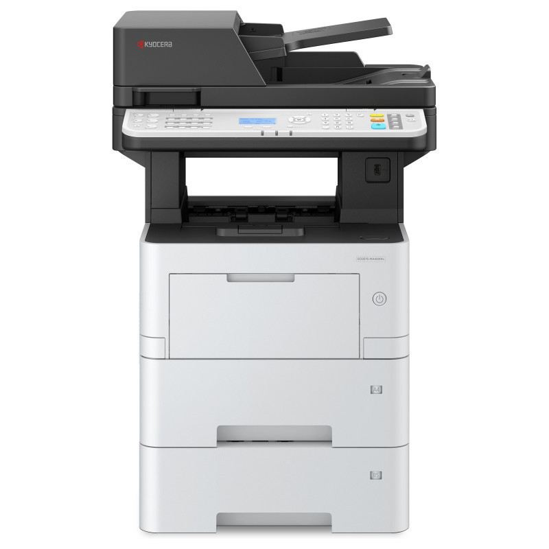 "KYOCERA ECOSYS MA4500fx. Print technology: Laser, Printing: Mono printing, Maximum resolution: 1200 x 1200 DPI. Copying: Mono copying, Maximum copy resolution: 600 x 600 DPI. Scanning: Colour scanning, Optical scanning resolution: 600 x 600 DPI. Faxing: Mono faxing. Duplex functions: Copy, Fax, Print, Scan. Maximum ISO A-series paper size: A4. Direct printing. Product colour: Black, White"\n"The ECOSYS MA4500x is the perfect blend of output quality, priceless reliability, and data security. It transforms workflows while keeping energy usage to a minimum, and its robustness and versatility make it the ideal choice for workspaces that seek to do more with less."
