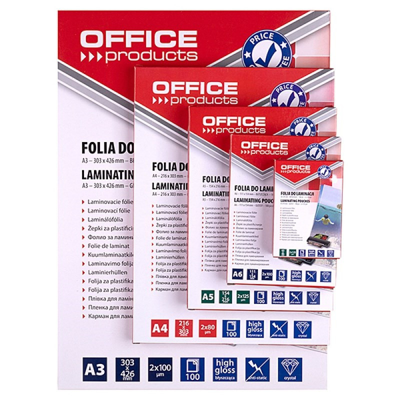 OFFICE PRODUCTS Laminavimo plėvelė, A3, 2x80 mikronų, blizgi, 100 lapų, skaidri
