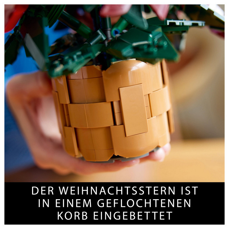 Creative building for plant-lovers – This set includes all you need to craft a detailed LEGO® interpretation of a ‘Grande Italia’ poinsettia plant nestled in a woven-basket flowerpot
