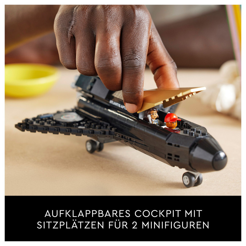 Features – The model space shuttle has an opening cockpit and comes with attachable landing gear, and the set also includes 2 space helmets with opening gold-coloured visors