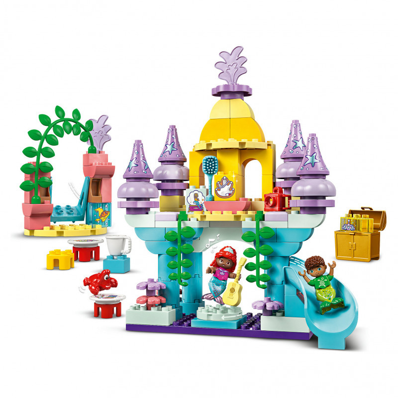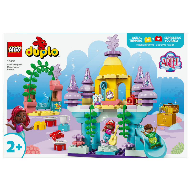 "LEGO DUPLO Ariel's Magical Underwater Palace. Product type: Building set, Recommended age (min): 2 yr(s), Material: Plastic, Number of pieces: 116 pc(s). Package weight: 1.97 kg"\n"Immerse fans of Disney’s The Little Mermaid in a world of undersea fun with the LEGO® DUPLO® | Disney Ariel’s Magical Underwater Palace (10435) building toy for preschool kids. Toddlers aged 2+ use their logical thinking and self-expression to recreate scenes from the Disney Junior TV show Ariel.