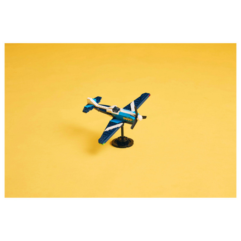 "LEGO Creator Aircraft: Race Plane. Product type: Building set, Recommended age (min): 7 yr(s), Material: Plastic, Number of pieces: 178 pc(s). Package weight: 322 g"\n"Superfast adventures in the sky await boys and girls aged 7 plus with the LEGO® Creator 3in1 Aircraft: Race Plane (31160) toy playset. The plane model has a rotating propeller at the front, moving wheels so it can travel on the ground, and a brick-built stand for display.