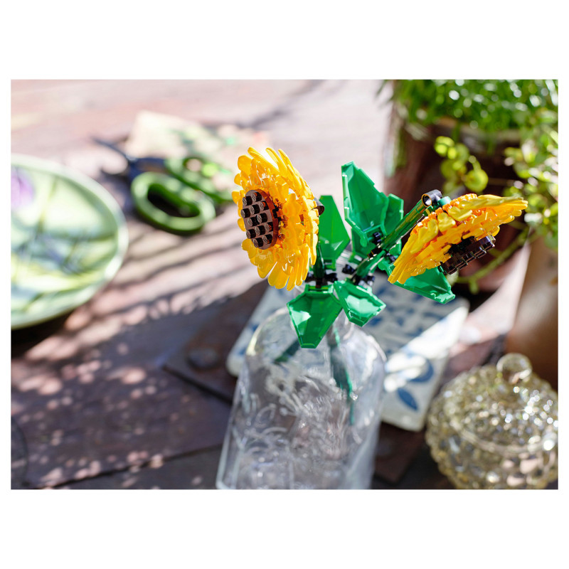 Build a sunflower display – Create a display piece for any room with the colourful LEGO® Sunflowers (40524) building kit. Includes 2 sunflower blooms with adjustable green stems and leaves