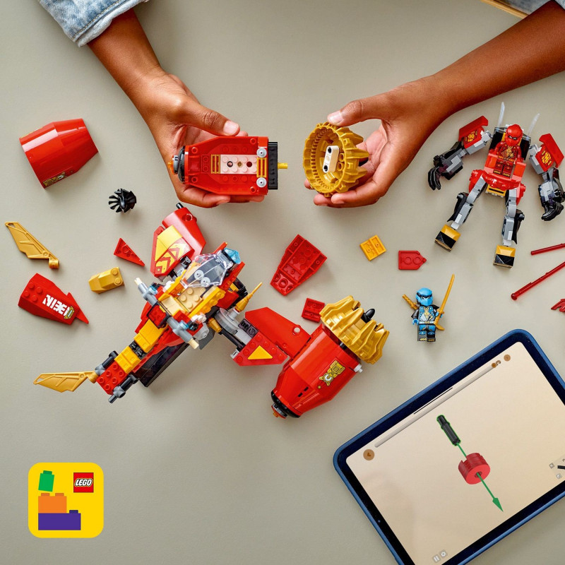 Combo ninja vehicle toy – This large NINJAGO® vehicle can be separated into 2 smaller vehicles: Kai’s mech and Nya’s flying motorcycle so kids can enjoy even more ninja playtime
