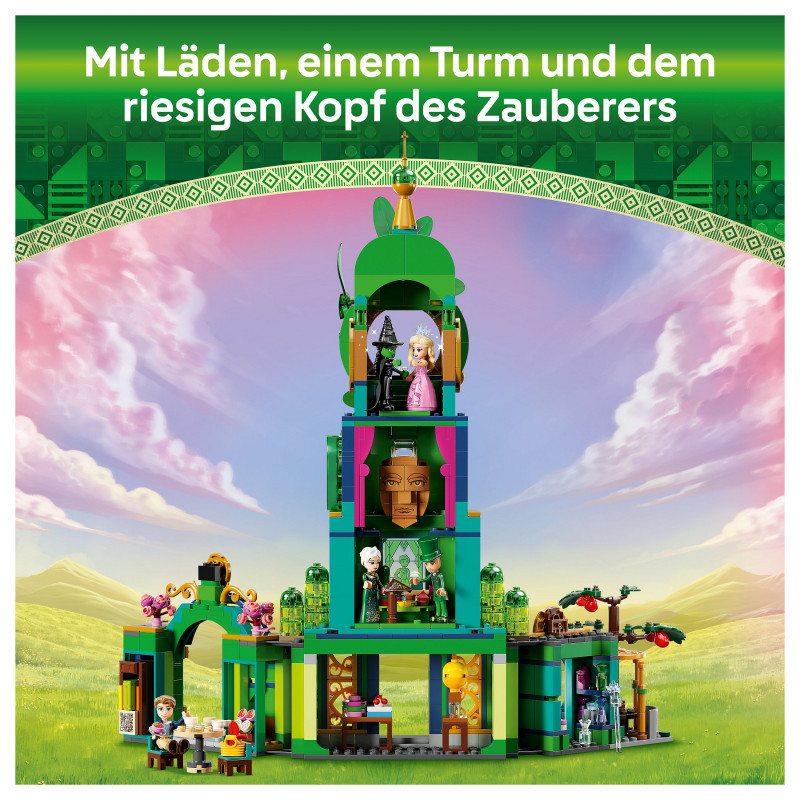 Welcome to Emerald City collectible toy – Kids go on a LEGO® building adventure as they relive an iconic scene from the Wicked film with this 3-storey tower set