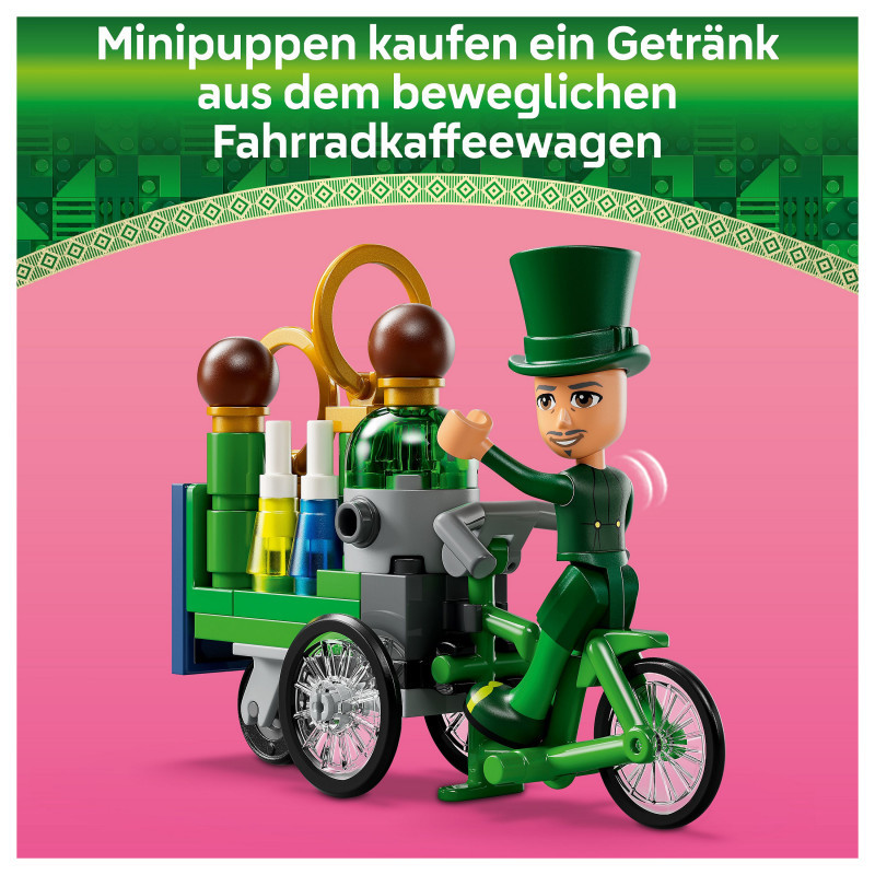 With 5 minidolls included, this fantasy toy lets kids play out Wicked friendship moments between the Fiyero, Glinda and Elphaba minidoll figures as they browse the cosmetics shop, buy cakes or grab a drink from the bicycle coffee vendor. For more play inspiration, kids can scan the set’s hidden QR code to access unique online LEGO Wicked content.