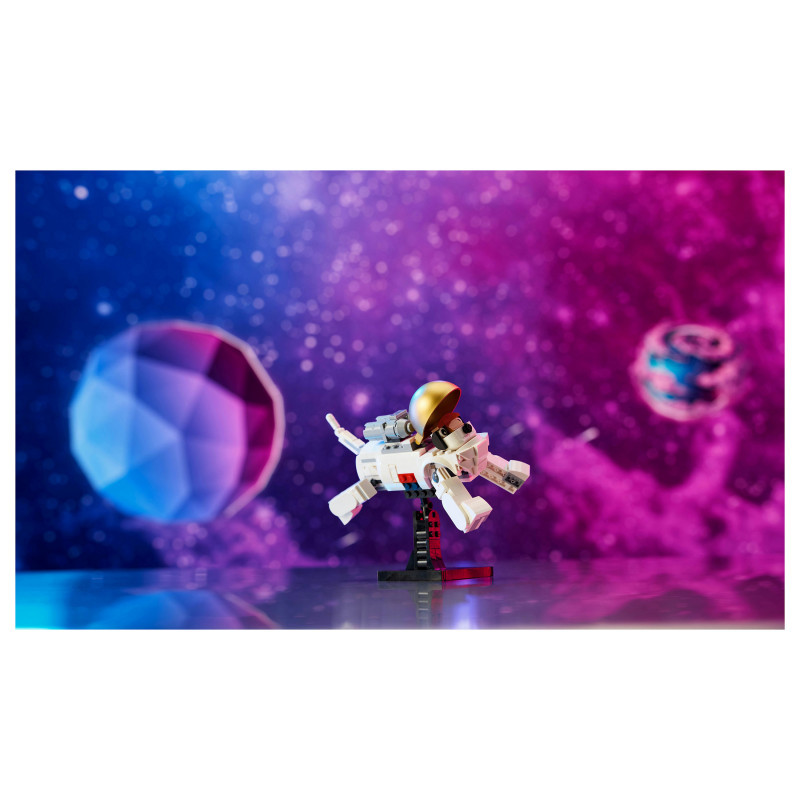 Boys and girls can build 3 different space playsets: a posable space astronaut, a futuristic space dog with posable legs and tail, or a space viper jet with a seat for a minifigure (not included) to pilot it. All 3 models make great space-themed creative gifts and come with stands for display.