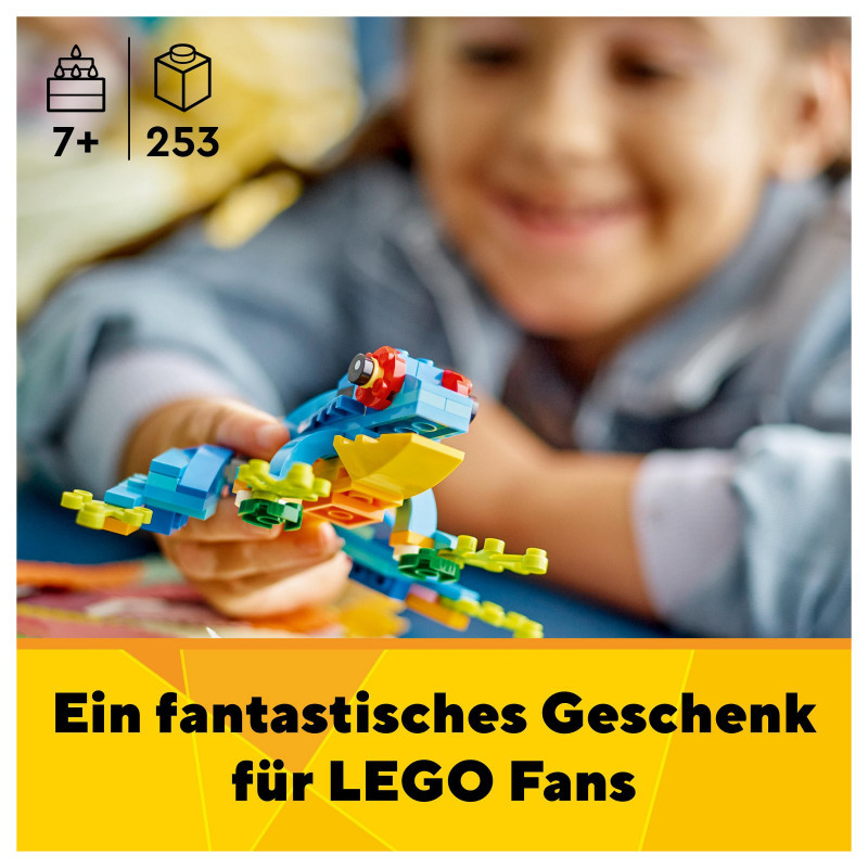 Kids have the chance to build 3 different exotic animal toys with this fantastic LEGO 3in1 set. They can build a colourful parrot sitting on a tree branch or rebuild it into a playful fish swimming at the bottom of the sea or a cheeky frog that can move its legs.