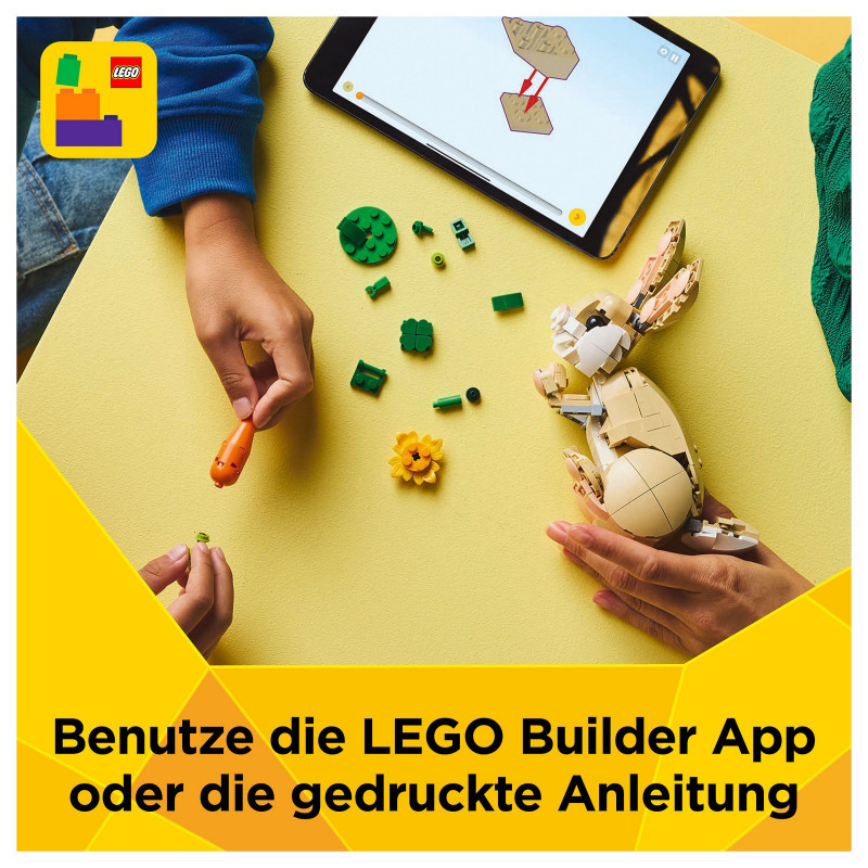 Measurements – This 326-piece LEGO® set features a buildable Cute Bunny toy standing over 19 cm (7.5 in.) tall"