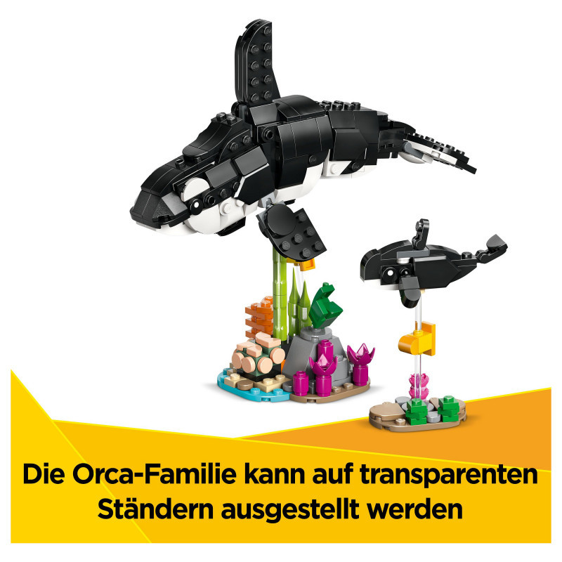 Models for play and display – When playtime is over, place the LEGO® animal figures on a shelf or bedside, with 2 transparent stands provided to display the orca family