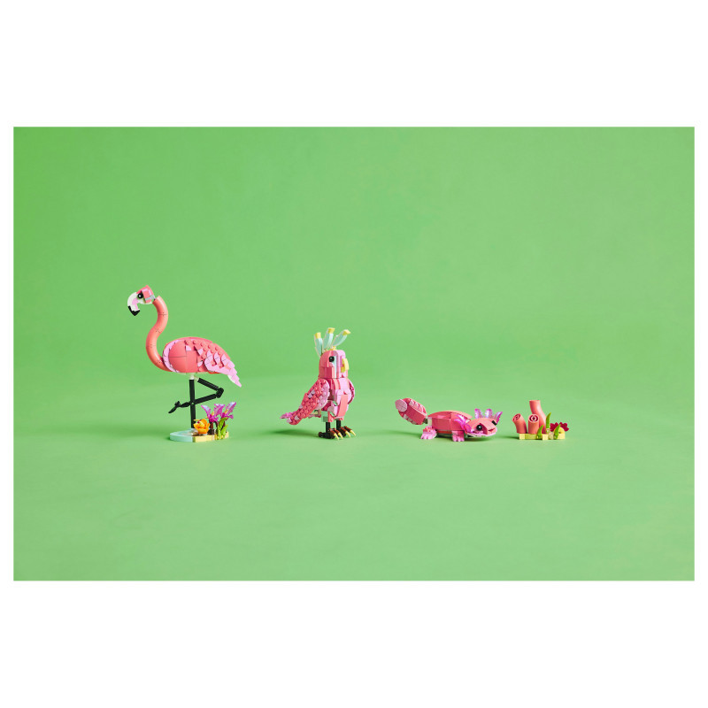 Endless play options – Kids can role-play stories with 3 different animal models (note that models cannot be built simultaneously): a pink flamingo toy, a pink cockatoo toy or a pink axolotl toy