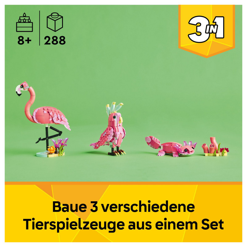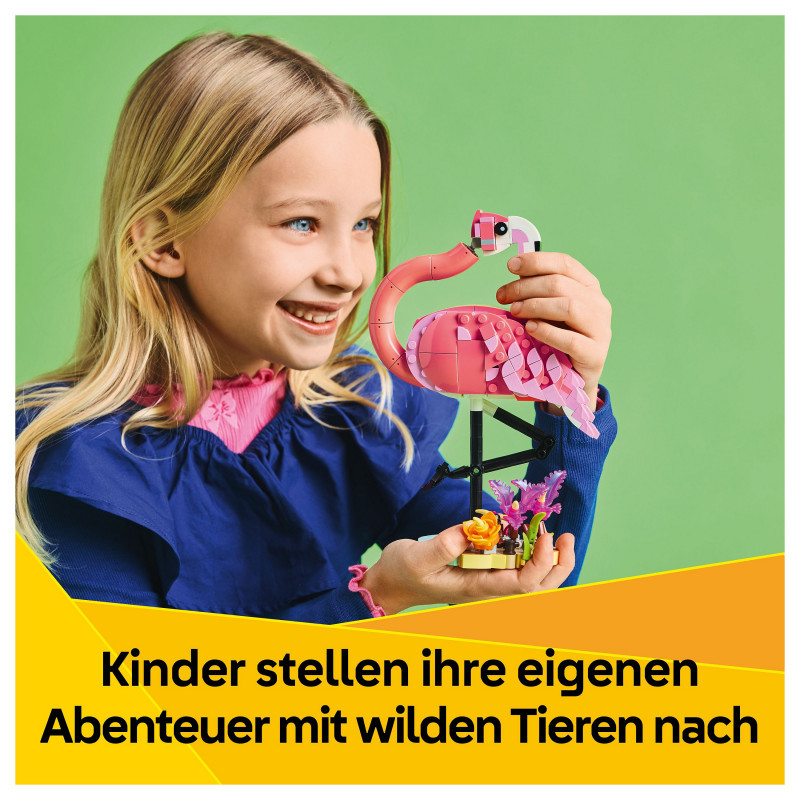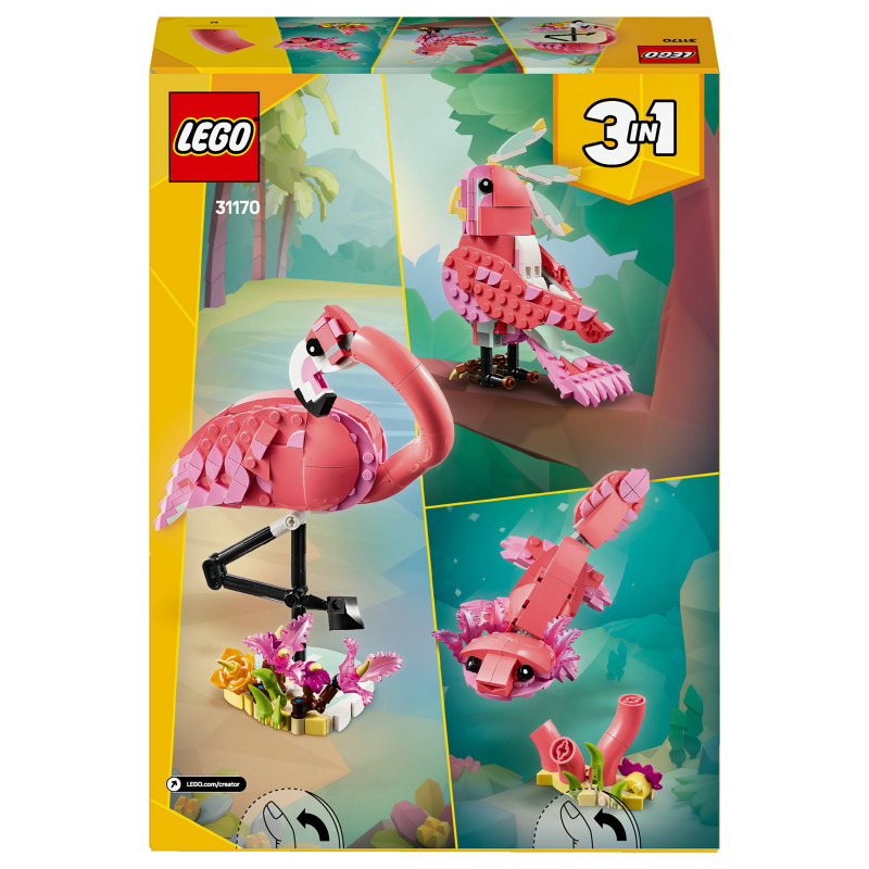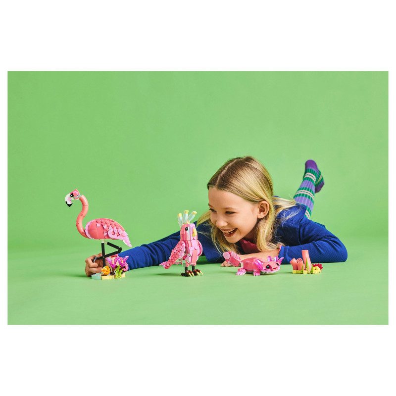 3 wild animal building options in 1 box – The LEGO® Creator 3in1 Wild Animals: Pink Flamingo toy set lets girls and boys aged 8 and over build and rebuild 3 different animal figures with the same bricks
