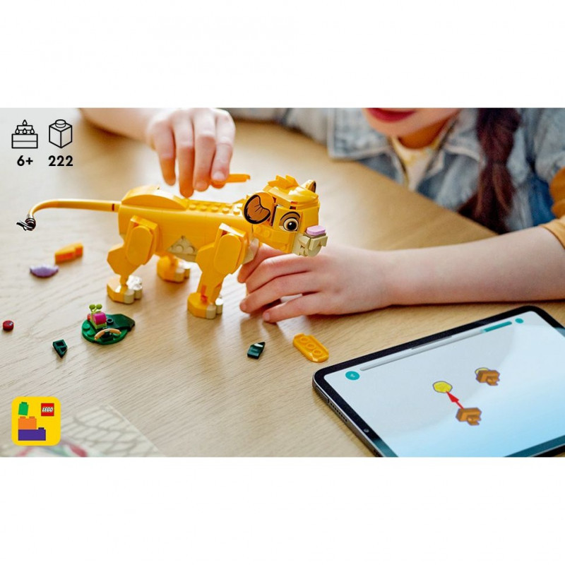 "LEGO Simba the Lion King Cub. Product type: Building set, Recommended age (min): 6 yr(s), Material: Plastic, Number of pieces: 222 pc(s). Package weight: 309 g"\n"Appeal to kids and The Lion King fans aged 6+ with this fun gift of a LEGO® ǀ Disney Simba the Lion King Cub (43243) play-and-display building toy, featuring a buildable character model that celebrates The Lion King’s 30th anniversary. The precocious baby Simba LEGO ǀ Disney animal figure from the hit film has a rotating head and movable legs and tail, and it comes with a leaf and 4 ‘bugs’ for ‘food’.