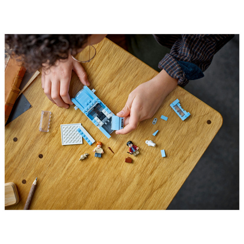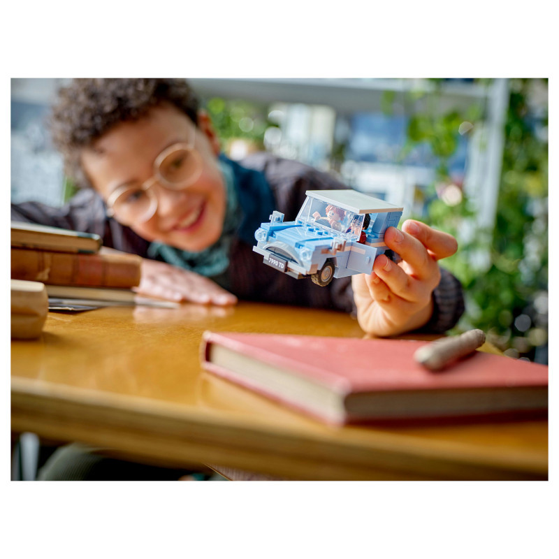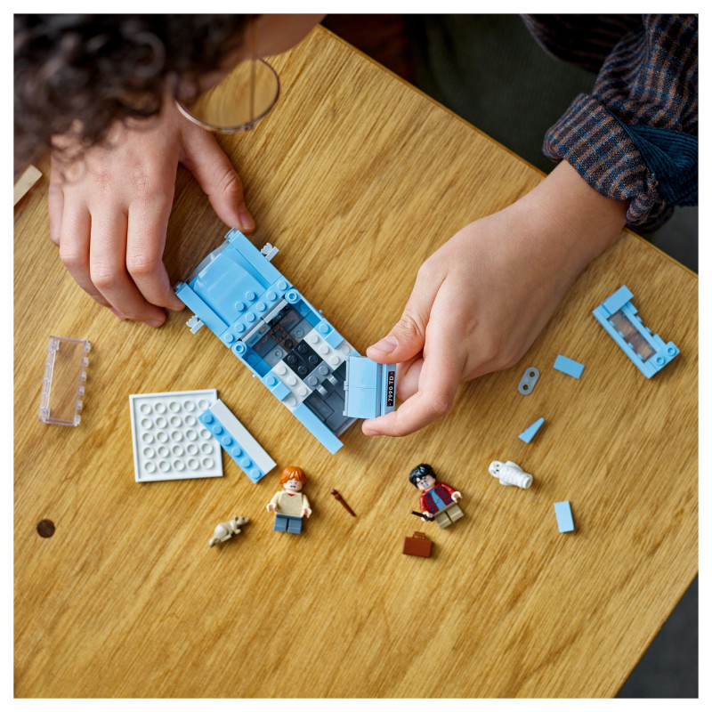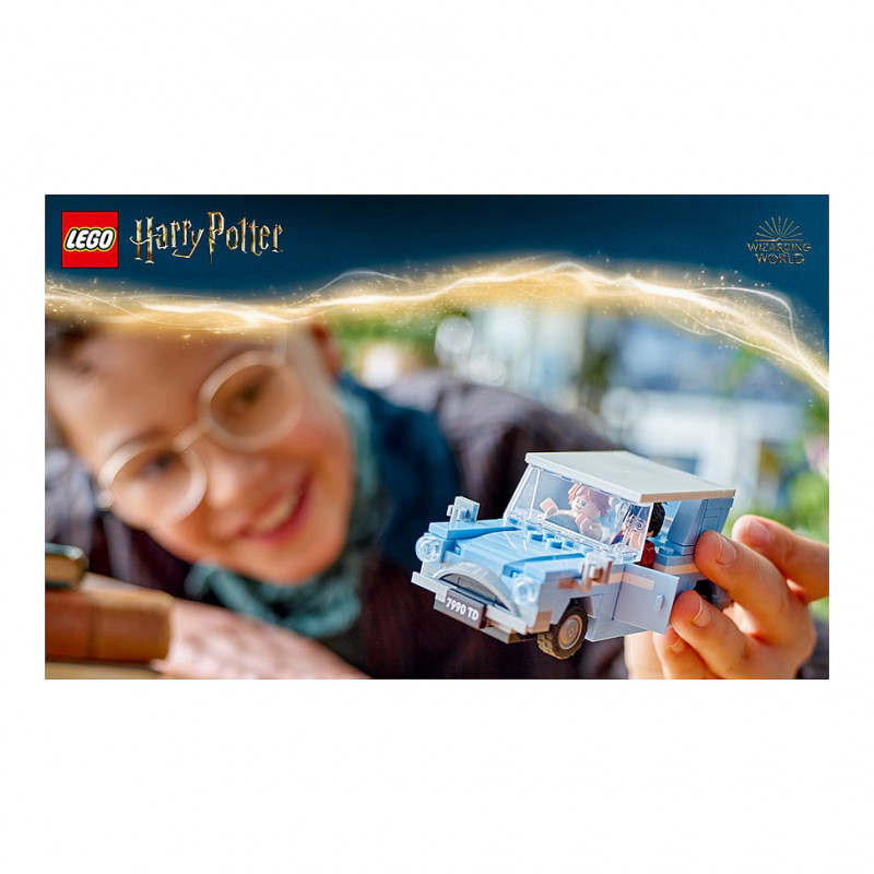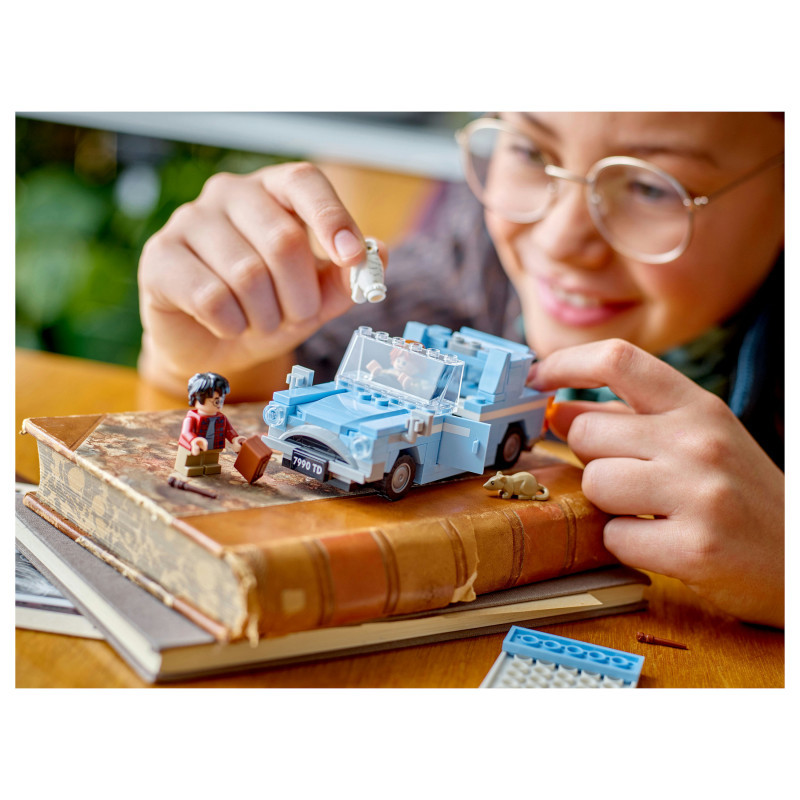 "LEGO Harry Potter Flying Ford Anglia™. Product type: Building set, Recommended age (min): 7 yr(s), Material: Plastic, Number of pieces: 165 pc(s). Package weight: 227 g"\n"Recreate Harry Potter™ and Ron Weasley’s thrilling journey to Hogwarts™ in the Flying Ford Anglia™ (76424) car with this fantasy toy playset for kids aged 7+. The LEGO® brick-built adventure toy car features opening doors and a removable roof so it’s easy to place the Harry Potter and Ron Weasley™ minifigures and Hedwig™ owl figure inside. There is also space in the boot for the suitcase, Harry and Ron’s wands and Ron’s pet rat, Scabbers™.