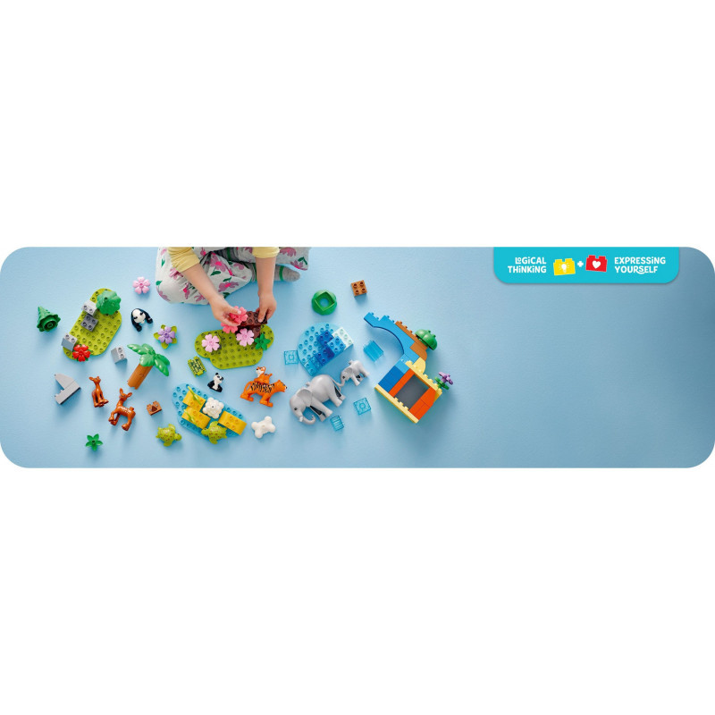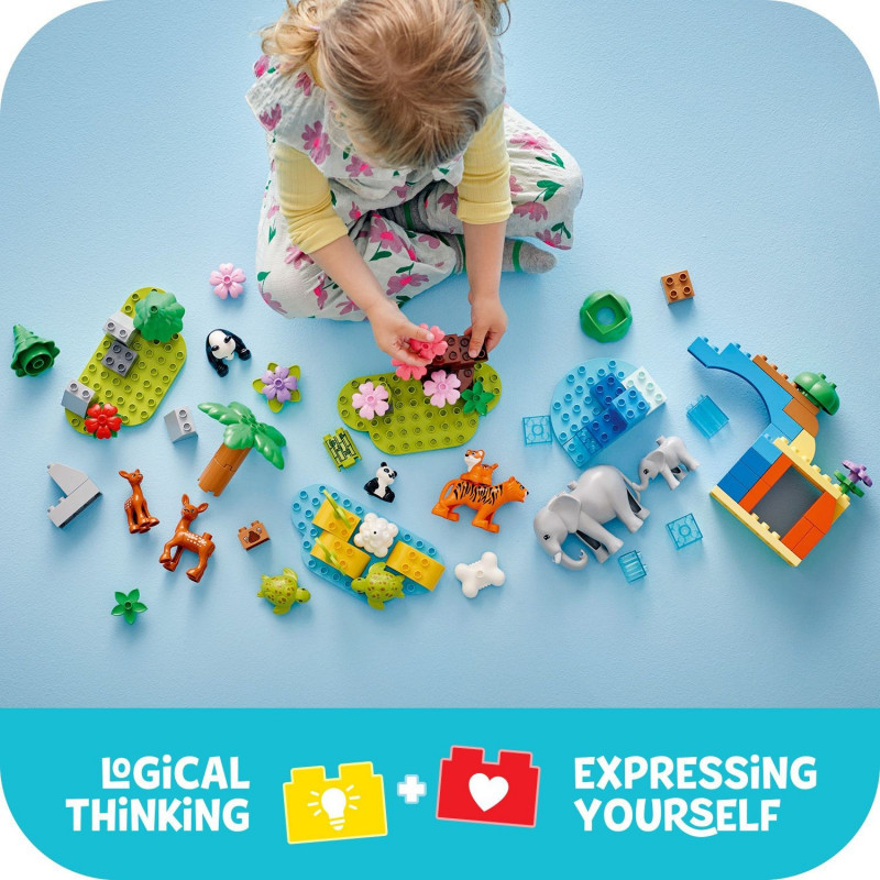 Imagination toy with 10 LEGO® DUPLO® wild animals for creative story-making – Includes tiger, elephant, deer and panda figures, each with a baby, and 2 turtle figures