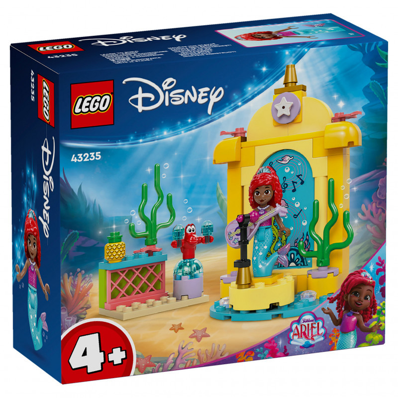 "LEGO Disney Princess Ariel's Music Stage. Product type: Building set, Recommended age (min): 4 yr(s), Material: Plastic, Number of pieces: 60 pc(s). Package weight: 149 g"\n"Performance and creative play await kids aged 4+ as they learn to build with this LEGO® ǀ Disney Princess Ariel’s Music Stage (43235) construction toy. This Disney Princess buildable playset gift is designed to improve problem-solving skills and inspire youngsters to enjoy endless creative play.