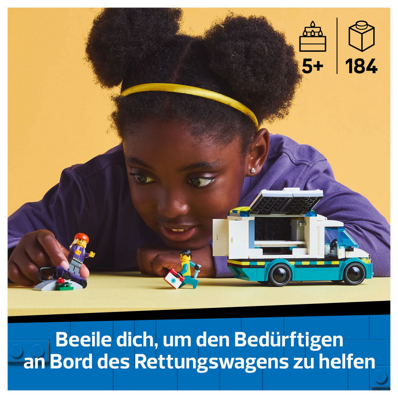 Ambulance toy for ages 5 and over – The LEGO® City Emergency Ambulance playset comes equipped with lots of realistic features for exciting rescue adventures