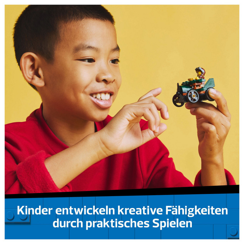 LEGO City playsets feature cool vehicles, realistic structures and fun characters that inspire imaginative play without limits. Kids can add this soapbox car set to others (sold separately) from the LEGO City range to expand their world of play possibilities.