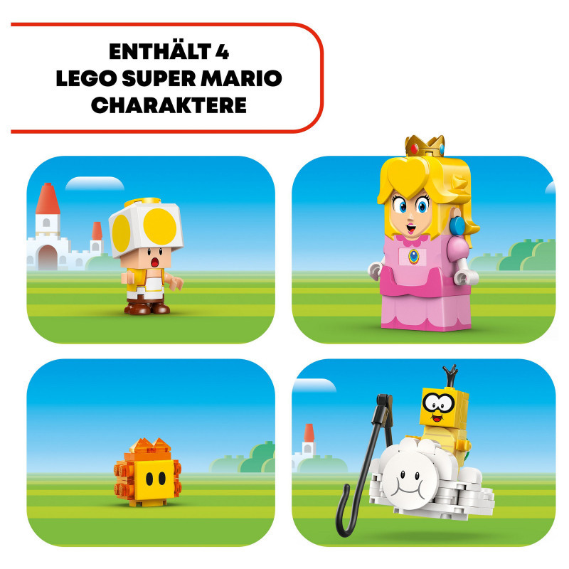 4 LEGO® Super Mario™ figures – This Nintendo® LEGO set includes an interactive LEGO® Peach™ princess toy figure, plus Lakitu, a Yellow Toad and a Lava Bubble