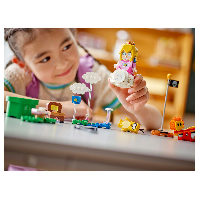 Princess toy playset for fun adventures with Interactive LEGO® Peach™ – Join LEGO Peach for a picnic tea party and help her fly on Lakitu’s cloud to rescue the Yellow Toad