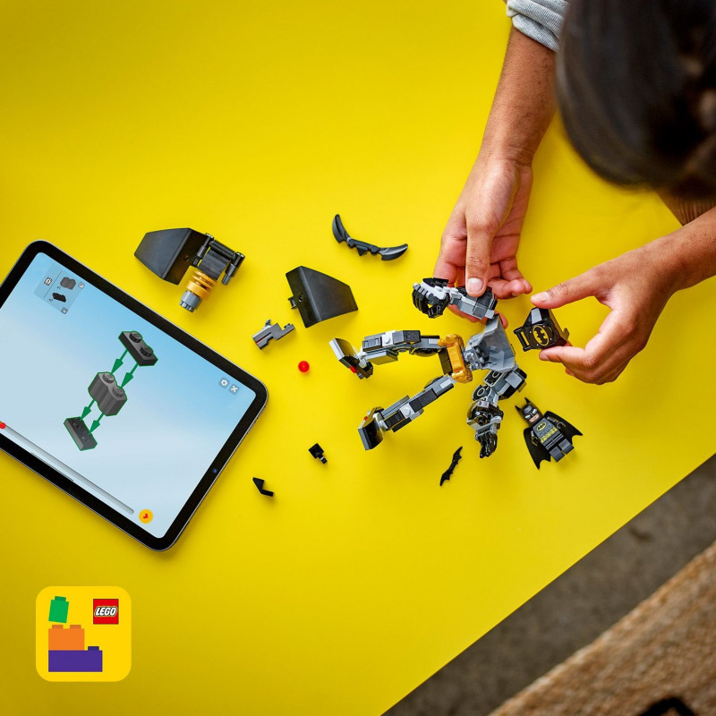 Kids insert the LEGO® Batman minifigure into the mech toy’s opening cockpit. The mech figure holds a buildable Batarang™ and has a stud launcher on its arm. On its back is a jetpack covered by a 2-part cape, which can be moved into various positions. The minifigure wears a fabric cape and holds another Batarang, which can be stored on the right arm of the mech. The mech’s jointed arms, legs and hands let fans of Batman and super-hero figures enjoy endless hands-on battle action. Kids can expand the play possibilities even further by combining this Batman super-hero toy with other LEGO mechs in the range (sold separately). For added digital fun, builders can zoom in, rotate models in 3D and track their progress using the fun, intuitive LEGO Builder app.