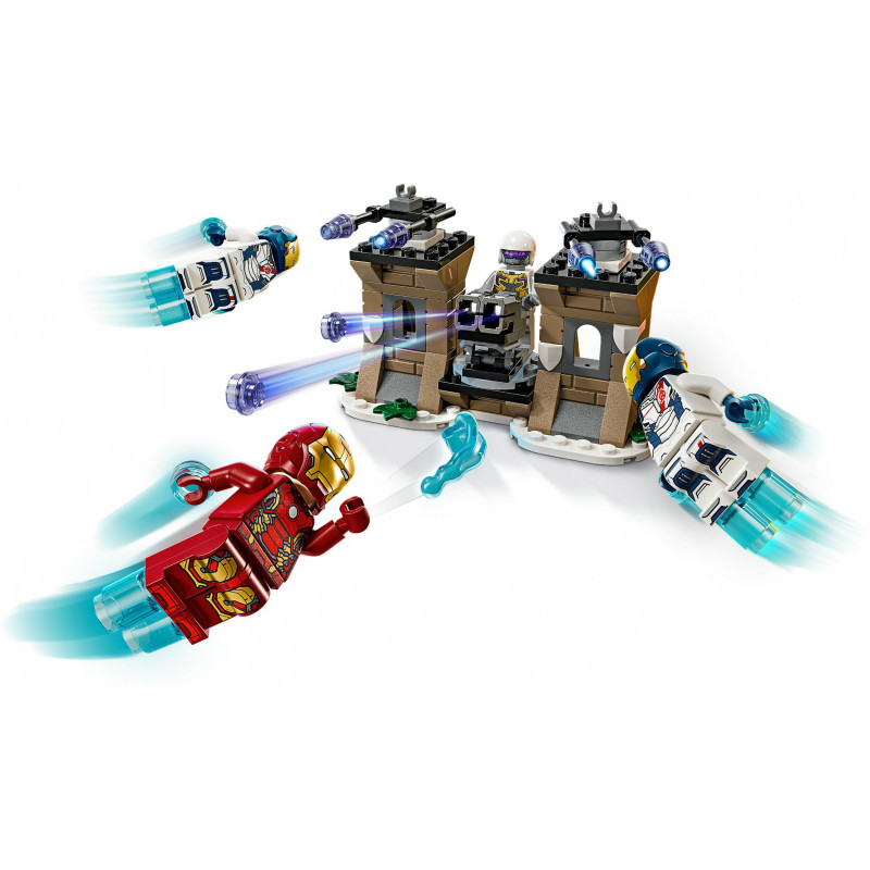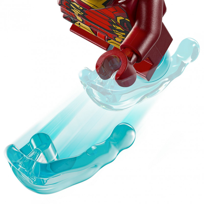 Authentic details – The Iron Man minifigure has an opening visor and holds a power blaster, the Hydra Trooper has a stud shooter, and special bricks give the impression that the minifigures are flying