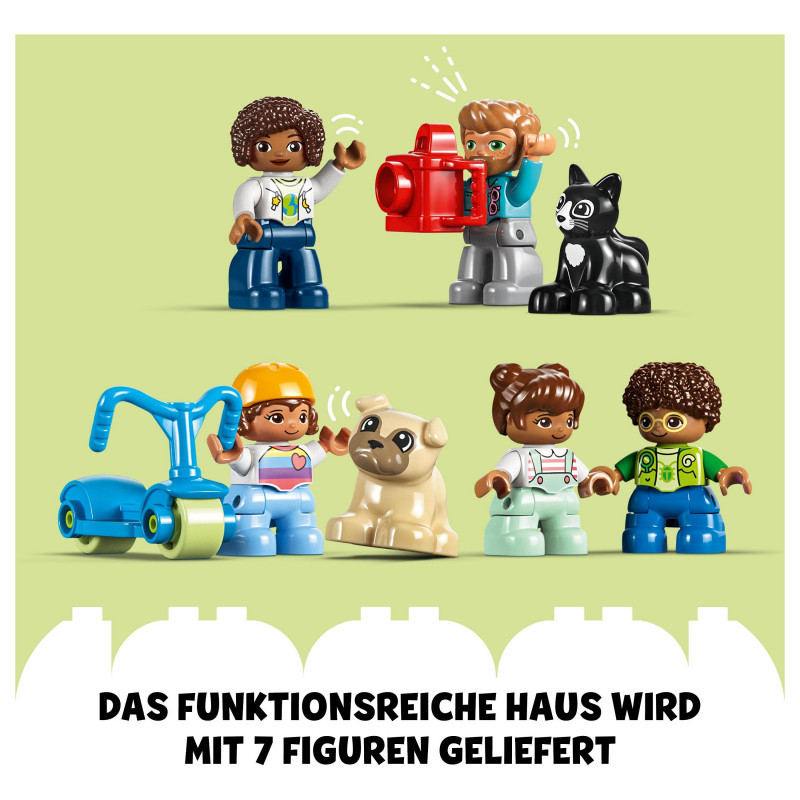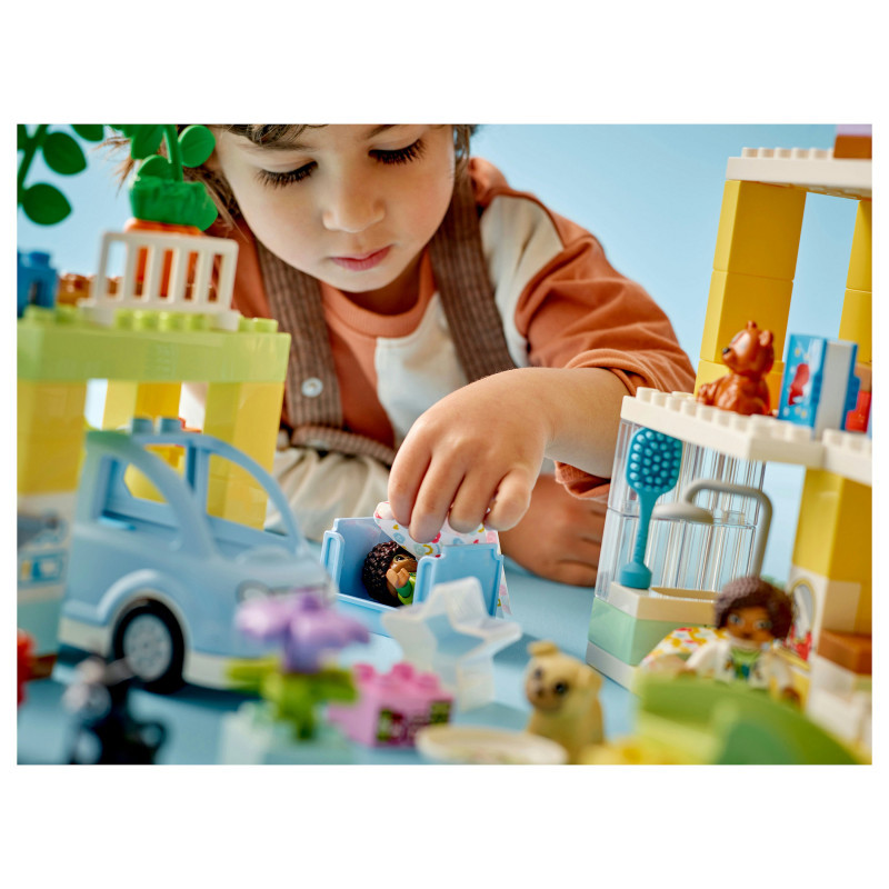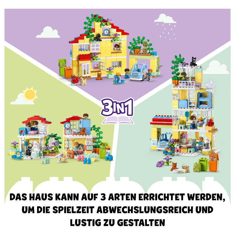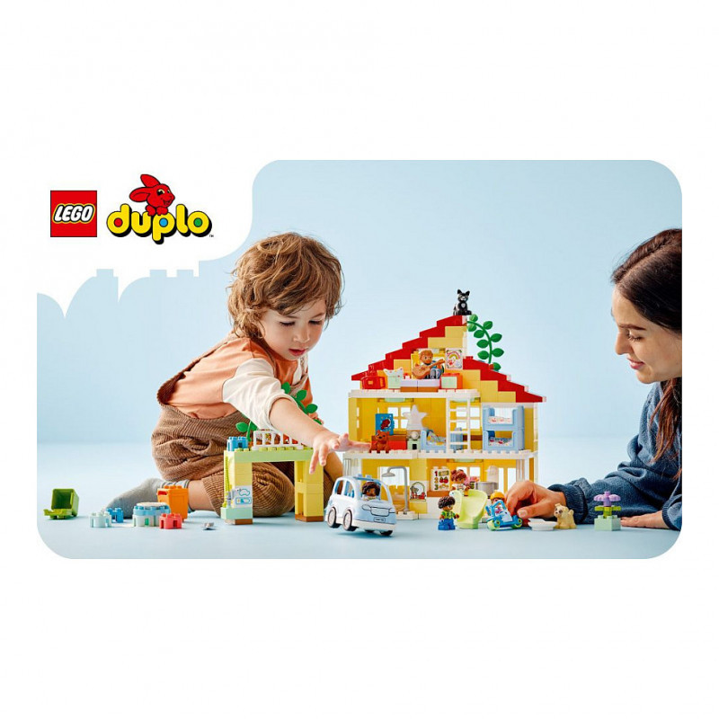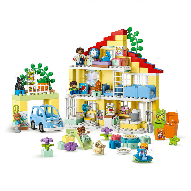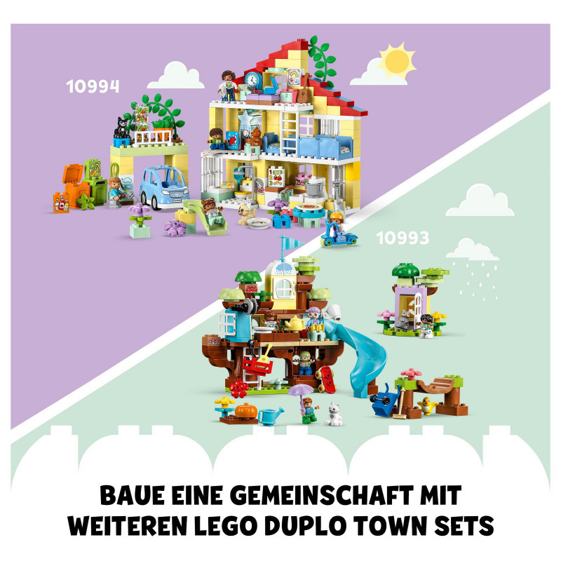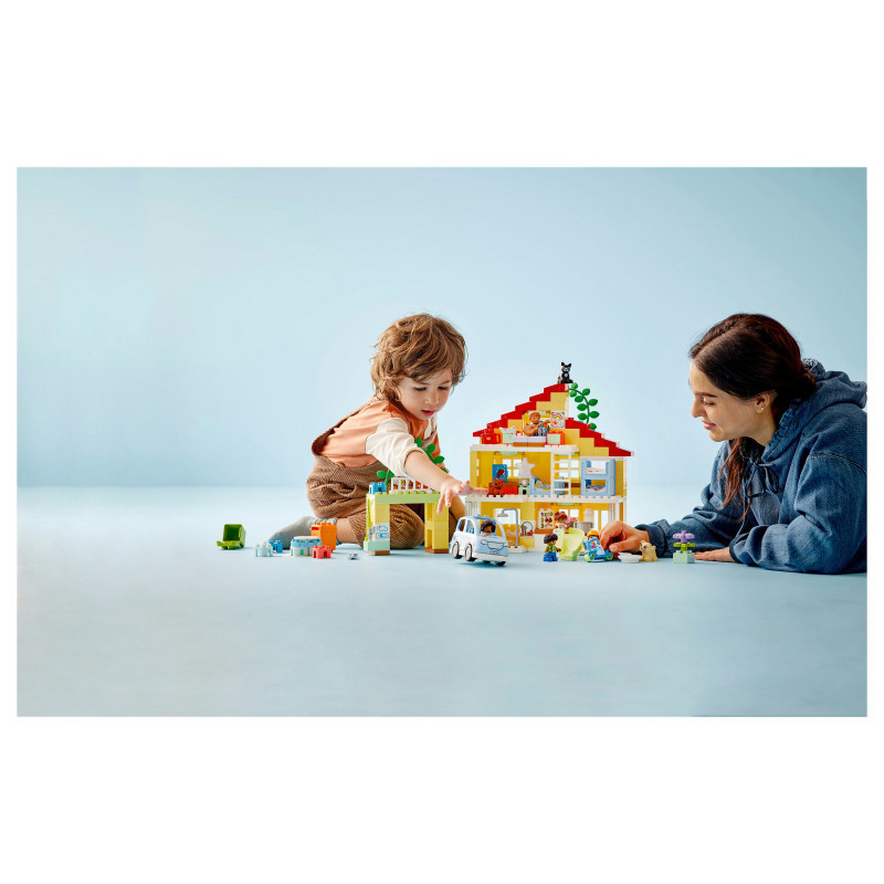 "LEGO DUPLO 3in1 Family House. Product type: Building set, Recommended age (min): 3 yr(s), Material: Plastic, Number of pieces: 218 pc(s). Package weight: 3.45 kg"\n"Welcome to the LEGO® DUPLO® Town 3in1 Family House (10994) toy, where a world of kids’ learning awaits. Packed with authentic details, this house lets toddlers aged 2+ and parents play out precious family moments. With 7 figures included, parents can enjoy teaching social skills while kids explore their own self-expression.