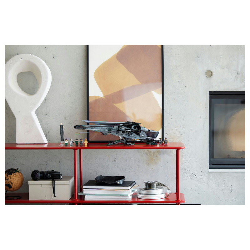 "LEGO ICONS Dune Atreides Royal Ornithopter. Product type: Building set, Recommended age (min): 18 yr(s), Material: Plastic, Number of pieces: 1369 pc(s). Package weight: 1.93 kg"\n"Here’s an epic film-themed gift idea for Dune fans: The LEGO® Icons Dune Atreides Royal Ornithopter (10327) building set for adults. Treat your favourite film-lover or take quality time out to construct a meticulously detailed replica model of the legendary House Atreides aircraft.