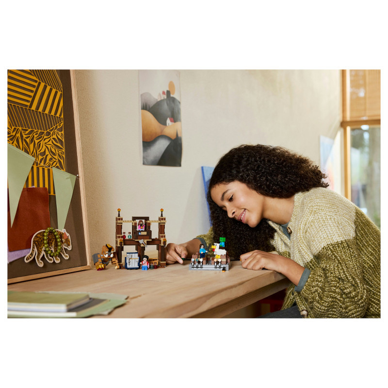The LEGO® Minecraft building set features toy figures from the film – Steve, Garrett, Henry, a baby zombie, a chicken jockey and a posable great hog – plus weapons and potions that kids can use as they recreate battle scenes and explore adventures of their own. The set features a functional fighting ring with score-keepers and handles kids can attach to the fighters. There’s also a mansion facade with a removable chest and weapons rack. For digital fun, the LEGO Builder app lets kids zoom in, rotate models in 3D and track their progress.