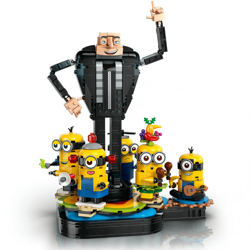 Gru figure and dancing Minions – LEGO® Despicable Me 4 Brick-Built Gru and Minions is a buildable, play-and-display toy for boys and girls aged 9+ who are fans of the Minions’ films