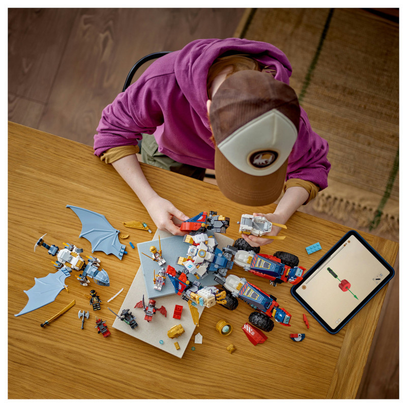 "LEGO NINJAGO Zane's Ultra Combiner Mech. Product type: Building set, Recommended age (min): 9 yr(s), Material: Plastic, Number of pieces: 1187 pc(s). Package weight: 1.54 kg"\n"Boys and girls aged 9 and over can enjoy endless play possibilities recreating exciting action from season 3 of the NINJAGO® Dragons Rising TV show with Zane’s Ultra Combiner Mech (71834) toy 4-in-1 building set.