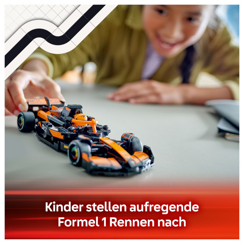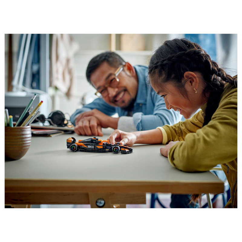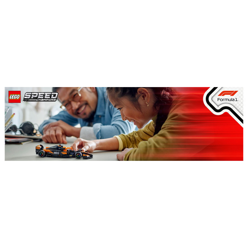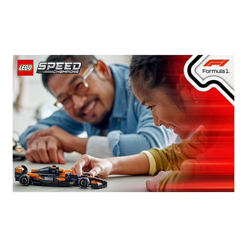 "LEGO Speed Champions McLaren F1® Team MCL38 Race Car. Product type: Building set, Recommended age (min): 10 yr(s), Material: Plastic, Number of pieces: 269 pc(s). Package weight: 294 g"\n"Experience all the excitement of Formula 1® racing with this LEGO® Speed Champions McLaren F1® Team MCL38 Race Car (77251) vehicle set for boys and girls aged 10 and over. Kids and adult car collectors can build, display and race an F1 race car model featuring design details from the real-life version that competed in the 2024 Formula 1 season.