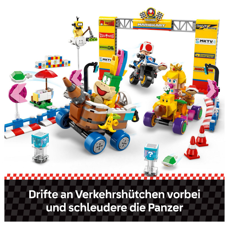 4 collectible Mario Kart™ characters – This LEGO® brick-built playset includes Baby Peach, Lakitu, Lemmy and Toad toy figures with assorted accessories for role-play adventures