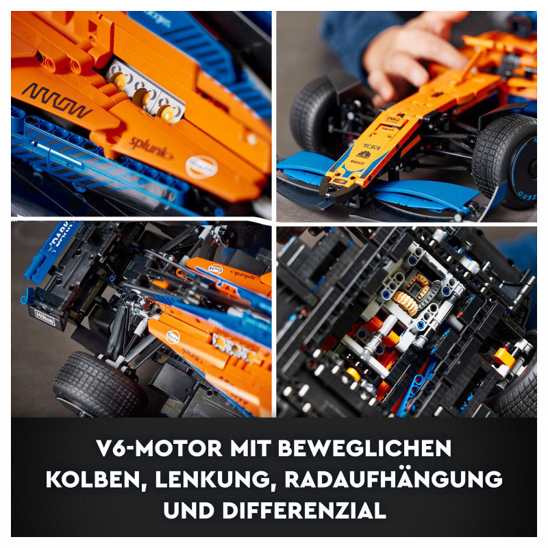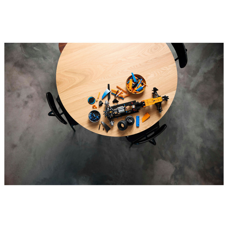 For 2022, the LEGO Technic designers have worked closely with the designers at McLaren Racing. Both sets of experts developed their model at the same time, making this a very special collaboration. Just like the real car, this LEGO Technic version features a V6 cylinder engine with moving pistons, steering, suspension and differential.