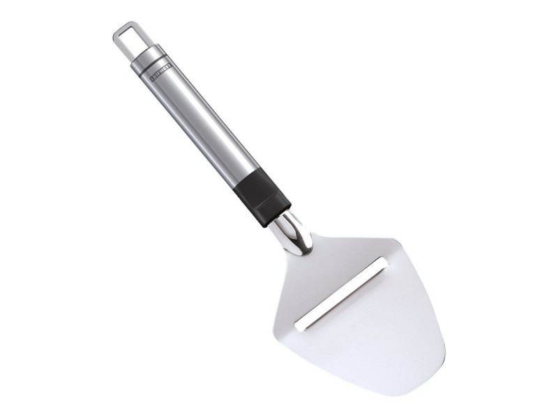 Leifheit ProLine sūrio peilis (1 vnt.) – funkcionalus ir stilingas virtuvės įrankis, skirtas patogiam ir tiksliam įvairių rūšių sūrių pjaustymui. Dėl specialios ašmenų formos ir ertmių, peilis sumažina sukibimą su minkštais sūriais, todėl pjaustymas tampa lengvas ir švarus. Ergonomiška nerūdijančio plieno rankena užtikrina patogų suėmimą, o modernaus dizaino ProLine serija dera su bet kuria virtuve. Peilis yra atsparus plovimui indaplovėje, tad priežiūra itin paprasta.