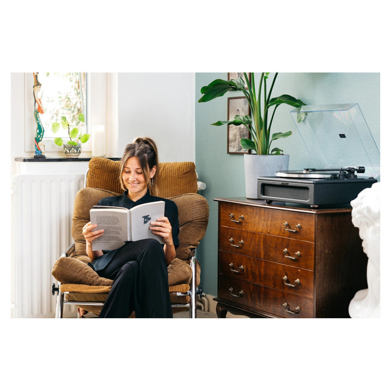 The plastic dust cover ensures that your record player does not disappear under a layer of dust. The Lenco LS-430 is finished with beautiful imitation leather and available in black or brown."